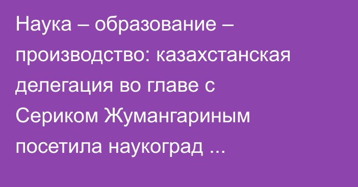 Задачу создать наукограды в Казахстане на основании детальной проработки и расчетов поставил Глава государства на мартовском Национальном курултае. Казахстанская делегация во главе заместителем Премьер-министра – министром национальной экономики Сериком Жумангариным посетила Новосибирскую область, где на базе Сибирского отделения Российской академии наук (СО РАН) сформирован крупнейший в России научно-образовательный и инновационный центр.