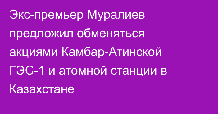 Экс-премьер Муралиев предложил обменяться акциями Камбар-Атинской ГЭС-1 и атомной станции в Казахстане