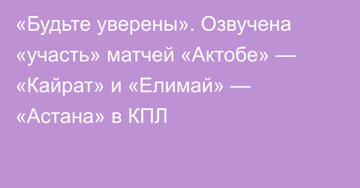 За перипетиями матча в Актобе, как-то на второй план отошла игра в Семее, где „Елимай« сразится с „Астаной« (другого слова и не подберешь). По значимости для турнирной таблицы это не менее важная игра. Однако, конечно, она не сравниться с битвой „Актобе« — „Кайрат«, по накалу страстей, который считается суперматчем. Даже пресловутый термин „битва за шесть очков« как-то тонет в общем антураже. Будьте уверены и в Астане, и в Семее, и в Костанае участники матчей, да и вообще футболисты, функционеры, тренеры по всему Казахстану прильнут к своим телевизорам, ноутбукам или мобильным телефонам дабы посмотреть сражение в Актобе. Да и еще мы забыли упомянуть о том, что на Запад Казахстана вместе с другими приедет главный тренер сборной Казахстана Али Алиев», — пишет автор канала.