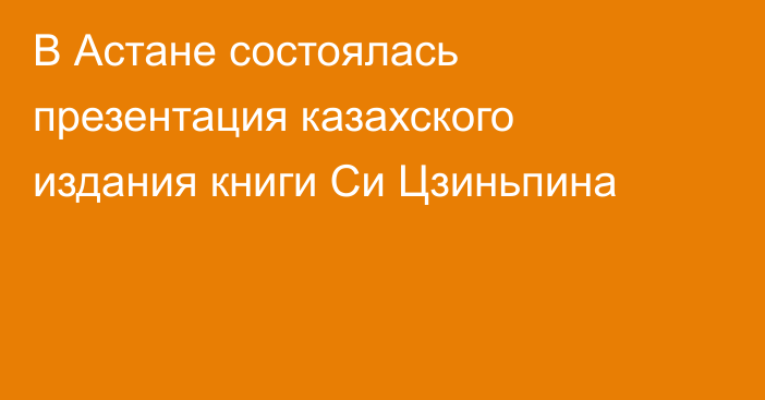 В Астане состоялась презентация казахского издания книги Си Цзиньпина