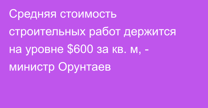 Tazabek — На сегодня средняя стоимость строительных работ держится на уровне 600 долларов за кв. м. Об этом сегодня, 30 мая, сообщил министр строительства Нурдан Орунтаев в ходе заседания депутатской группы «Мекенчил».