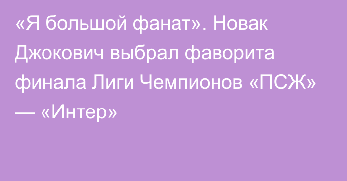 24-кратный чемпион турниров «Большого шлема» сербский теннисист Новак Джокович ответил на вопрос, за какую команду будет болеть в предстоящем финале Лиги Чемпионов УЕФА сезона-2024/2025 между французским «ПСЖ» и итальянским «Интером», сообщает Sports.kz со ссылкой на Championat.com.
