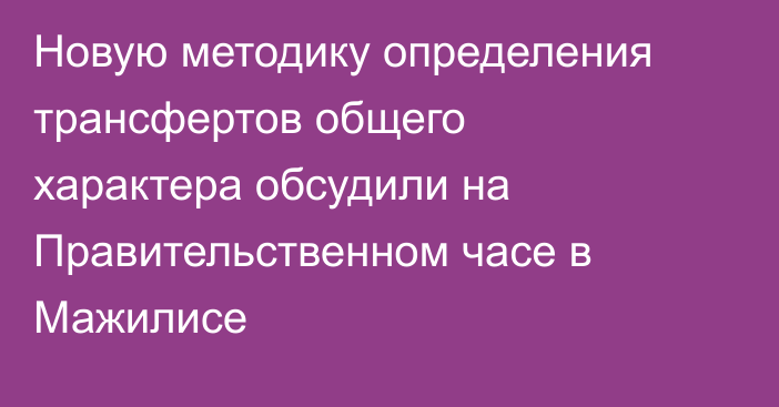На Правительственном часе в Мажилисе под председательством вице-спикера Палаты Дании Еспаевой обсудили новые подходы по определению трансфертов общего характера (ТОХ). О совершенствовании системы межбюджетных отношений депутатам рассказал заместитель Премьер-министра – министр национальной экономики Серик Жумангарин.