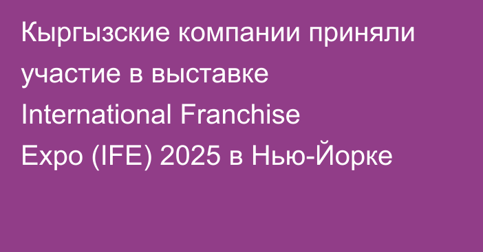 «IFE 2025 собрала более 1000 брендов, франчайзинговых сетей, инвесторов и консультантов со всего мира. Делегация из Кыргызстана представила национальные бизнес-проекты и провела десятки встреч с представителями американских и международных компаний», — говорится в сообщении.