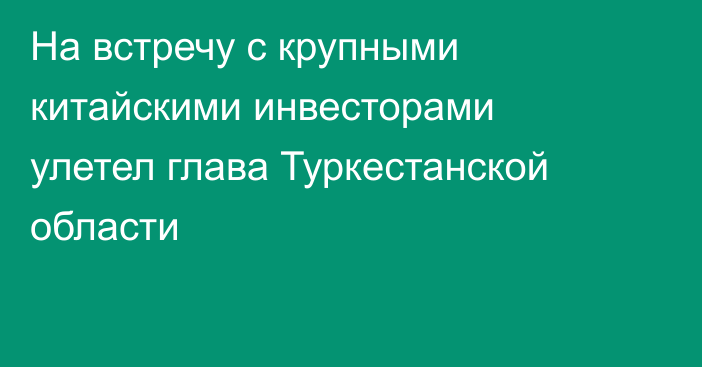 На встречу с крупными китайскими инвесторами улетел глава Туркестанской области