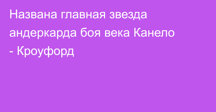 Названа главная звезда андеркарда боя века Канело - Кроуфорд