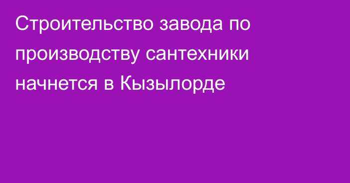 Строительство завода по производству сантехники начнется в Кызылорде