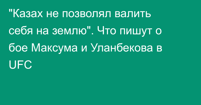 Российский сайт Sport24 прокомментировал бой между казахстанцем Азатом Максумом (15-2) и россиянином Тагиром Уланбековым (17-2), состоявшийся в рамках турнира UFC в Баку, передают Vesti.kz.