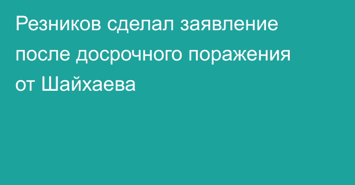 Резников и Шайхаев провели бой 28 июня на турнире ACA 188 в Сочи. В этом поединке Артем потерпел поражение удушающим приемом в первом раунде. На его счету в смешанных единоборствах 25 побед и десять поражений.