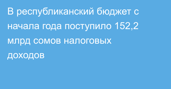 Tazabek — Налоговых доходов в республиканский бюджет поступило 152 млрд 205,6 млн сомов, при плане 146 млрд 70,6 млн сомов. Об этом говорится в отчете Центрального казначейства Минфина.
