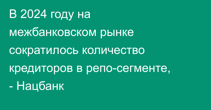 В 2024 году на межбанковском рынке сократилось количество кредиторов в репо-сегменте, - Нацбанк