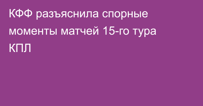 Директор департамента судейства и инспектирования КФФ Нуну Алешандре Паррейра де Каштру опубликовал разъяснения по отдельным игровым эпизодам 15-го тура Премьер-Лиги, согласно Правил игры, передает Sports.kz со ссылкой на пресс-службу КФФ.