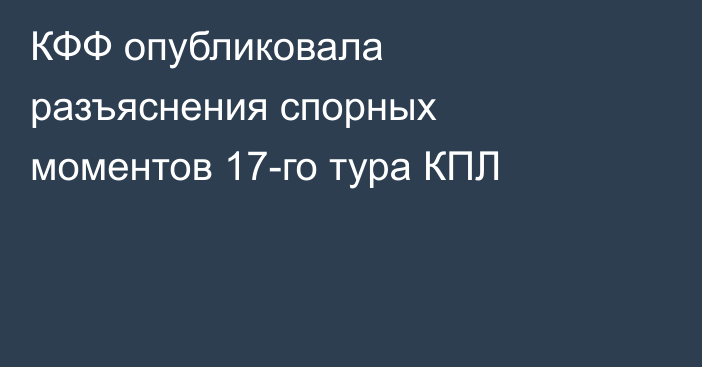 КФФ опубликовала разъяснения спорных моментов 17-го тура КПЛ