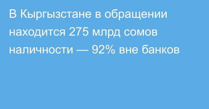 Из них 22 млрд 565,7 млн сомов находились в кассах коммерческих банков, а остальные 252 млрд 741,6 млн сомов вне банковской системы.