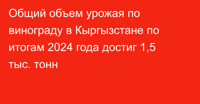 Tazabek — Общий объем урожая по винограду в Кыргызстане по итогам 2024 года достиг 1 530,2 тонны, что на 18,5 % превышает показатель прошлого года (1 291,6 тонны).Об этом сообщает пресс-служба Министерства сельского хозяйства.