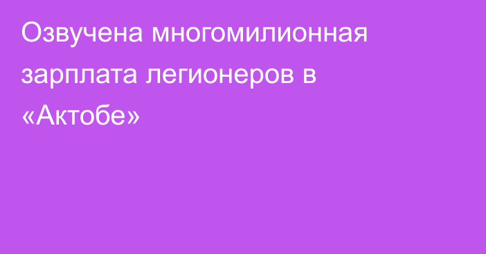 Озвучена многомилионная зарплата легионеров в «Актобе»