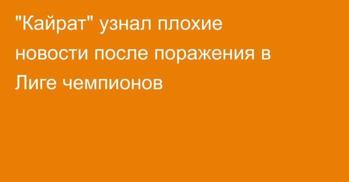«Кайрат» узнал плохие новости после поражения в Лиге чемпионов