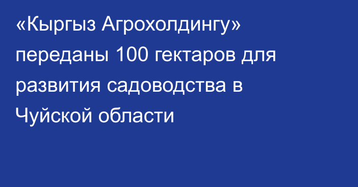 Согласно новым положениям, ОАО «Кыргыз Агрохолдинг» получает в безвозмездное срочное пользование сроком до 49 лет участок многолетних насаждений площадью 100 гектаров, расположенный в Аламединском районе Чуйской области.