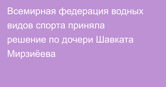 Всемирная федерация водных видов спорта приняла решение по дочери Шавката Мирзиёева