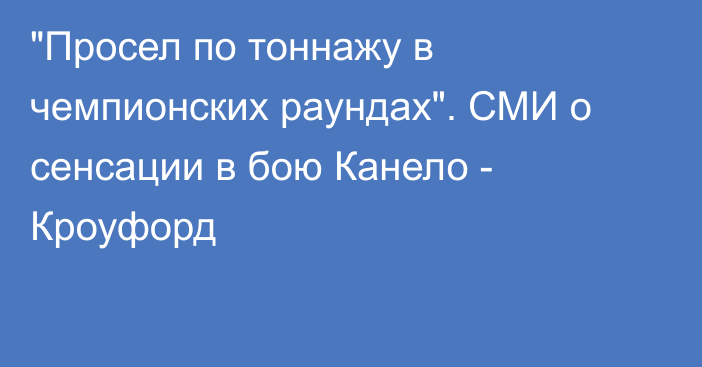 Канело просел по тоннажу в чемпионских раундах. Кроуфорд должен побеждать.