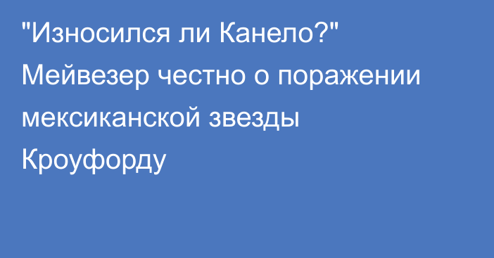 «Это хорошо для бокса, это было захватывающе и победил лучший. Износился ли Канело? Я не знаю. Бокс сильно изнашивает тело, возможно, так оно и есть, я не уверен», — приводит слова Мейвезера TMZ Sports.