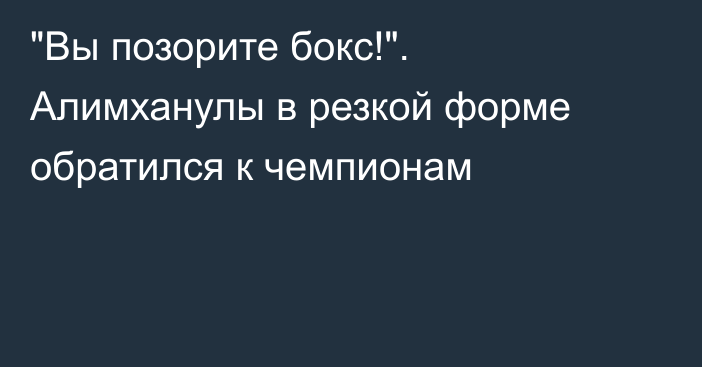 «Чемпионы, у меня нет времени за вами гоняться. Вы позорите бокс! Если не соглашаетесь на бой, зачем вообще держите титул? Я не думал, что будет так сложно!», — написал Алимханулы в соцсетях.