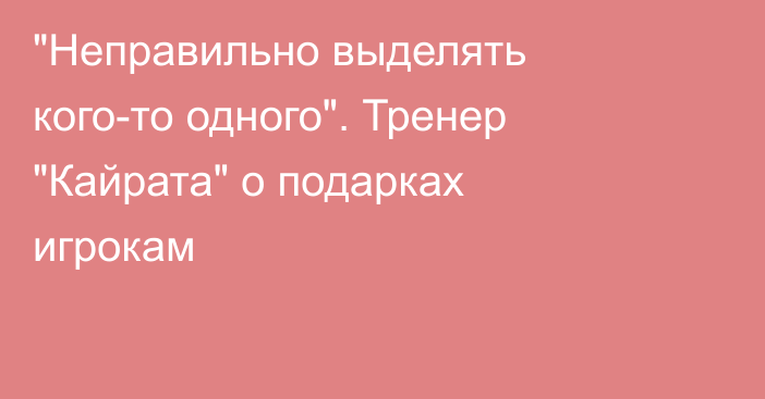Я считаю, что если хотят помогать, то должны помогать клубу. Или если дарить подарки, то дарить всем. Я не могу учить этих людей, которые эти подарки дарят. Но с точки зрения командной работы, конечно, неправильно кого-то одного выделять.