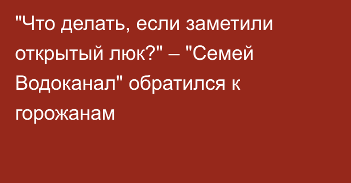 «Что делать, если заметили открытый люк?» – «Семей Водоканал» обратился к горожанам