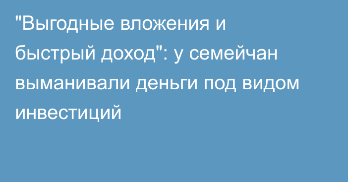«Выгодные вложения и быстрый доход»: у семейчан выманивали деньги под видом инвестиций