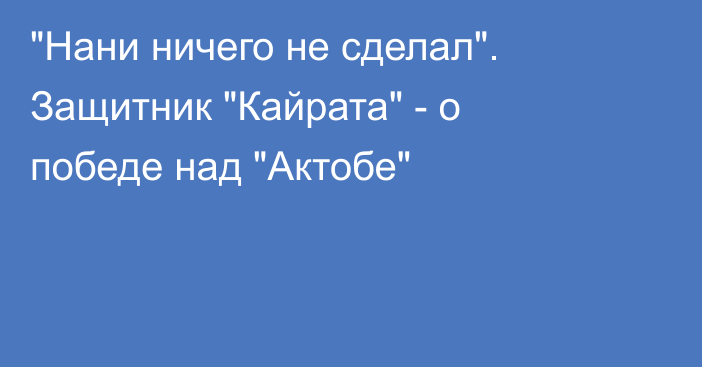 Кроме того, центрбек «Кайрата» высказался о некоторых индивидуальных противостояниях с игроками «Актобе» и в частности с португальцем Луишом Нани.