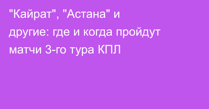 Третий тур казахстанской премьер-лиги (КПЛ) состоится с 20 по 22 марта, сообщает корреспондент Vesti.kz. Восемь матчей пройдут в пяти городах.