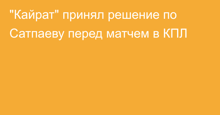 «Кайрат» принял решение по Сатпаеву перед матчем в КПЛ