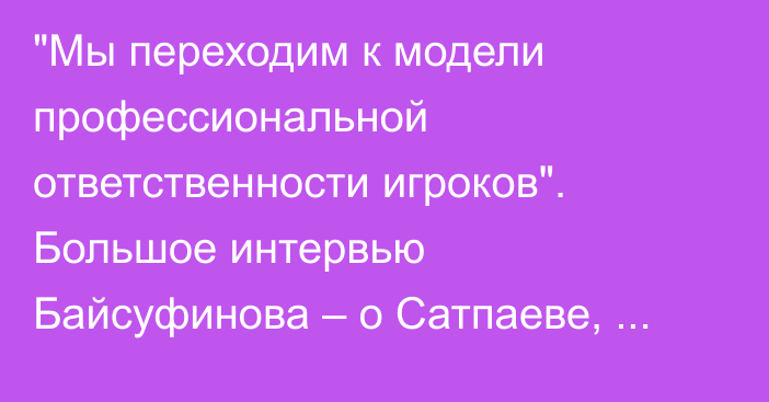 «Мы переходим к модели профессиональной ответственности игроков». Большое интервью Байсуфинова – о Сатпаеве, резонансных решениях и новой модели сборной Казахстана