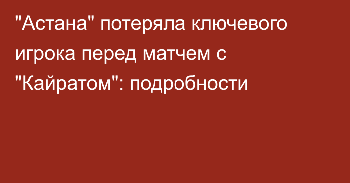 «Астана» понесла серьёзную потерю перед центральным матчем четвёртого тура казахстанской премьер-лиги (КПЛ) против «Кайрата». Ключевой защитник Бранимир Калаица пропустит встречу в Алматы, сообщает корреспондент Vesti.kz.