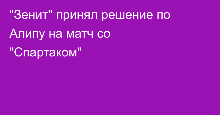 «Зенит» принял решение по Алипу на матч со «Спартаком»