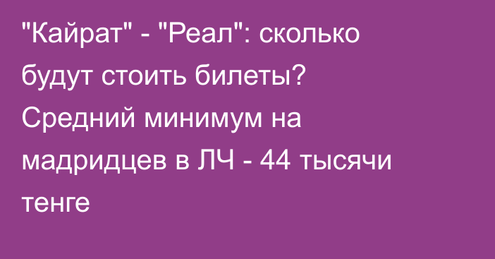 Через 19 дней в Алматы состоится исторический матч — «Кайрат» впервые сыграет на своём поле в рамках основного турнира Лиги чемпионов. Причём в соперниках будет самый титулованный клуб в истории турнира — мадридский «Реал». Продолжение •. Сыграет с «Кайратом»? Стали известны планы Беллингема после травмы.