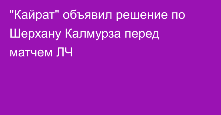 Главный тренер алматинского «Кайрата» Рафаэль Уразбахтин определился с составом на матч третьего тура общего этапа Лиги чемпионов против кипрского «Пафоса», передают Vesti.kz.Самым заметным изменением стало возвращение в ворота Темирлана Анарбекова, получившего травму до старта главного еврокубка в игре казахстанской премьер-лиги (КПЛ) против «Актобе» (1:0).Напомним, что в первые два тура ЛЧ позицию голкипера занял 18-летний Шерхан Калмурза, отыгравший дебютную встречу «Кайрата» против лиссабонского «Спортинга» (1:4) и домашний матч с мадридским «Реалом» (0:5).