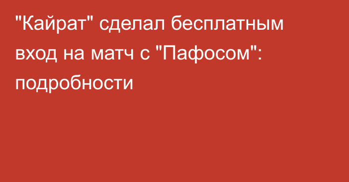 «Кайрат» удивил и сотворил историю в Лиге Чемпионов Республиканский интернет-портал Sports.kz собрал комментарии кипрских болельщиков после матча.Большая часть фанатов «Пафоса» после матча сосредоточилась на судействе и отменённом голе. Они были уверены, что команда заслуживала победу, но потеряла очки из-за ошибок арбитра и странных решений VAR.