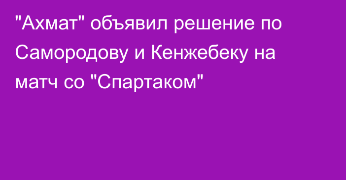 Грозненский «Ахмат» объявил состав на матч 25-го тура РПЛ-2025/26 против московского «Спартака», сообщают Vesti.kz. Продолжение •. Недоволен Кенжебеком? Черчесов сделал заявление и вспомнил о сборной Казахстана. Сегодня 00:08 •. Самородов сделал признание об «Актобе» и трансферных слухах после гола «Спартаку».