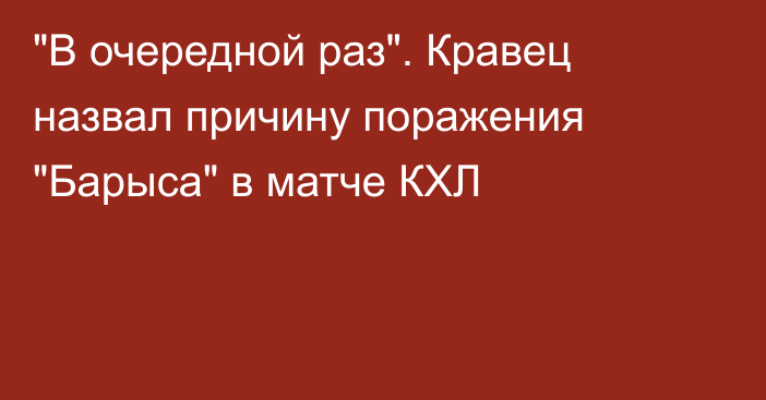 Главный тренер столичного «Барыса» Михаил Кравец высказался о поражении «Сибири» в рамках домашнего матча регулярного сезона Континентальной хоккейной лиги (КХЛ), передают Vesti.kz.Напомним, основное время завершилось со счётом 1:1. В серии буллитов точнее оказались гости из Новосибирска (1:2).«Тяжёлая игра, знали, что с «Сибирью» она такой и будет.