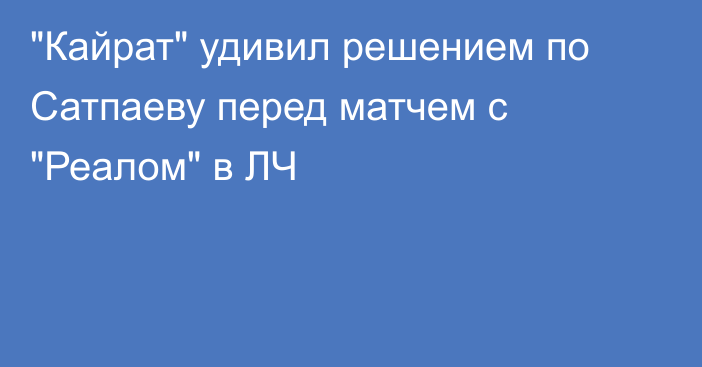 «Кайрат» уступил мадридскому «Реалу» в матче второго тура Юношеской Лиги УЕФА, сообщает корреспондент Vesti.kz. Продолжение •. «Кайрат» удивил решением по Сатпаеву перед матчем с «Реалом» в ЛЧ. Вчера 16:58 •. «Реал» принял неожиданное решение по Мбаппе на матч с «Кайратом». Вчера 17:20 •. Мбаппе против Сатпаева: названы составы на матч «Кайрат» — «Реал» в ЛЧ.