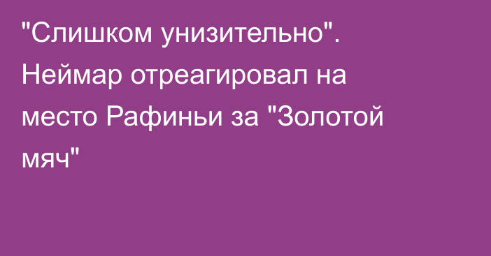 Нападающий Сантоса Неймар назвал унизительным пятое место форварда «Барселоны» Рафиньи в голосовании за «Золотой мяч», сообщают Vesti.kz.Церемония вручения прошла в понедельник в парижском театре Шатле. По итогам голосования журналистов из 100 стран награду получил Усман Дембеле (ПСЖ), вторым стал Ламин Ямаль («Барселона»), третьим — Витинья (ПСЖ), а четвёртым — Мохамед Салах («Ливерпуль»).«Рафинья на пятом месте — это слишком унизительно», — написал Неймар в комментариях под посвященным результатам «Золотого мяча» постом бразильского комментатора Эдуардо Семблано в соцсетях.В сезоне-2024/25 Рафинья отыграл за «Барселону» 57 матчей, отметившись 34 голами и 25 ассистами.Good vibes only pic.twitter.com/UfSdKxpcN5— FC Barcelona (@FCBarcelona) September 20, 2025 Лига Европы 2025/26 • Португалия, Брага • Общий этап, мужчины.