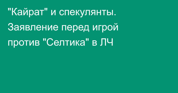 Пресс-служба ФК «Кайрат» выступила с официальным заявлением относительно билетов на ответный матч плей-офф квалификации Лиги чемпионов против «Селтика», передают Vesti.kz. Продолжение •. «Сумасшедшие данные». В России оценили молодого вратаря «Кайрата» перед матчем ЛЧ. Сегодня 14:50. В алматинском клубе призывают болельщиков приобретать билеты только через официальные источники.