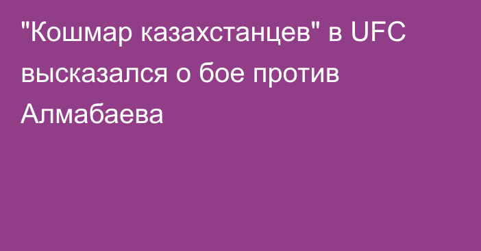 Казахстанский боец UFC Асу Алмабаев отреагировал на новость о своем предстоящем бое, сообщает Sports.kz.Восьмой номер рейтинга наилегчайшего дивизиона UFC опубликовал в своем инстаграм фанатский постер предстоящего поединка против американца Чарльза Джонсона, который занимает 15-ю позицию рейтинга.«С новой охотой», — написал казахстанец в своем посте.Ранее бразильский журналист Лео Уокер Гимараеш в своей соцсети Х сообщил, что бой между Алмабаевым и Джонсоном состоится 27 июня на турнире UFC в Баку (Азербайджан).Джонсон стал широко известен казахстанским фанатам UFC после побед над Жалгасом Жумагуловым и Азатом Максумом.