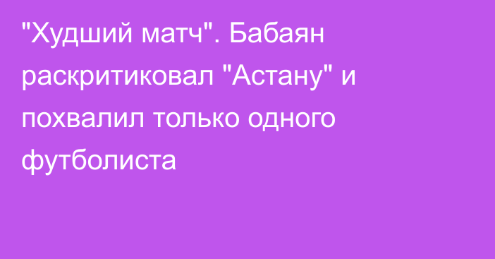 Наставник «Елимая» Андрей Карпович подвёл итоги матча 23-го тура казахстанской премьер-лиги (КПЛ) с «Астаной». Она завершилась ничейным исходом, сообщает корреспондент Vesti.kz. Продолжение •. «Худший матч». Бабаян раскритиковал «Астану» и похвалил только одного футболиста. 14 сентября 22:09 •. Казахстан сотворил сенсацию в финале ЧМ-2025 по боксу и завоевал золото.