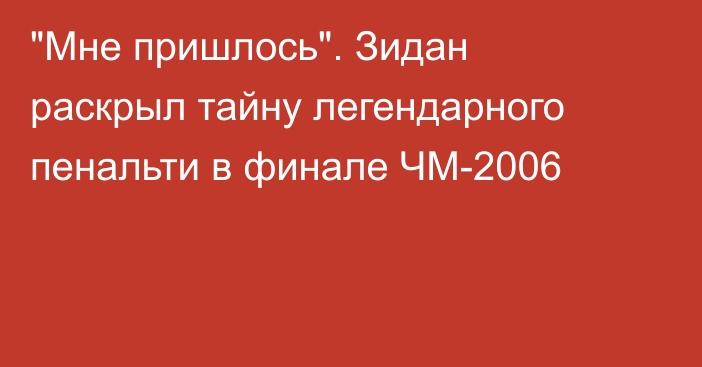 Бывший полузащитник сборной Франции Зинедин Зидан объяснил мотивы, которые заставили его выполнить пенальти паненкой на финальном матче чемпионата мира 2006 года, сообщают Vesti.kz.Француз реализовал одиннадцатиметровый удар на седьмой минуте встречи с Италией, которая завершилась со счётом 1:1 и была решена серией пенальти — 3:5 в пользу итальянцев.«Это необычный прием.