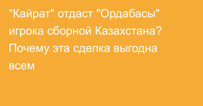 В зимнее межсезонье «Кайрат» может отдать в аренду «Ордабасы» центрального полузащитника Адлета Садыбекова. Корреспондент Vesti.kz видит в таком развитии событий плюсы для каждой из сторон. Продолжение •. «Кайрат» подписал игрока соперников по Лиге чемпионов: ему 25 и стоит 305 миллионов. Вчера 16:25 •.