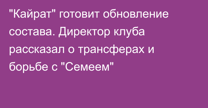 Спортивный директор АФК «Кайрат» Густаво Парадеда в интервью корреспонденту Vesti.kz высказался о нынешнем сезоне, причинах ухода ключевых игроков, омоложении состава и предстоящей битве с «Семеем». — Густаво, впереди ключевые матчи регулярного чемпионата против «Семей». Насколько они важны для команды? — Мы не рассматриваем эти матчи как обычные игры регулярного чемпионата.